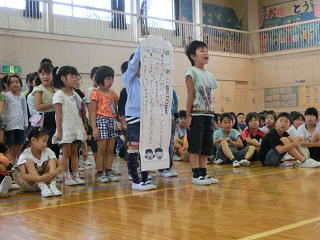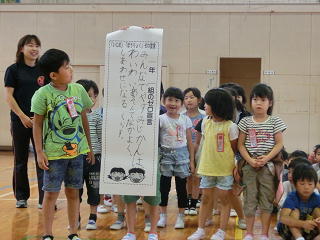 学校探検を行いました。学習したひらがなを学校の中で見つけていろいろな教室を探しました。隠れているひらがなをつなぎ合わせるとある言葉ができます。目をキラキラさせてがんばっていました。