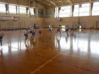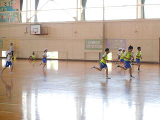 リズムよく跳べることを意識して、踏み切りの練習を行いました。