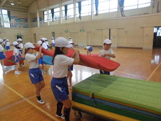 蜜にならない競技を考え実施した大玉運びでは、子どもたちが声を合わせて障害物を越えたり、一生懸命応援する姿が見られました。