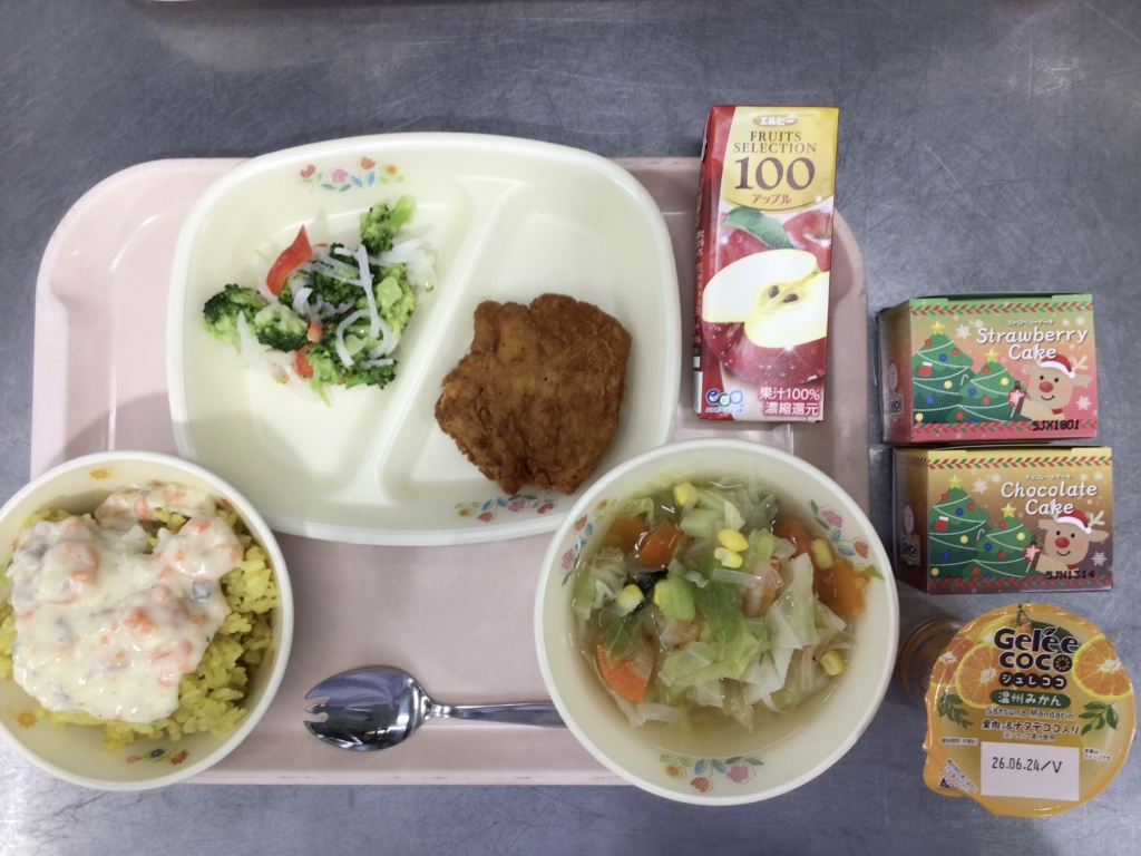 今日はクリスマスメニューです。自分で選んだデザートをいただきました。