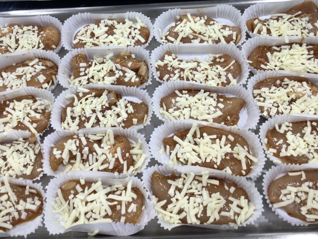 今日はチーズタッカルビです。調理料で下味をつけて、チーズをのせてスチームコンベンションで焼きました。肉のサイズを大きくしましたが、1年生も2年生も「もっと大きくても大丈夫!」と言う子が多く、ほとんどの子が全部食べていました絵文字:笑顔