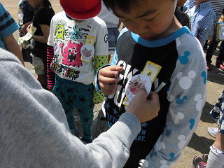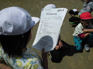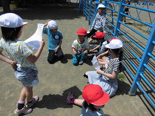 学校探検を行いました。学習したひらがなを学校の中で見つけていろいろな教室を探しました。隠れているひらがなをつなぎ合わせるとある言葉ができます。目をキラキラさせてがんばっていました。