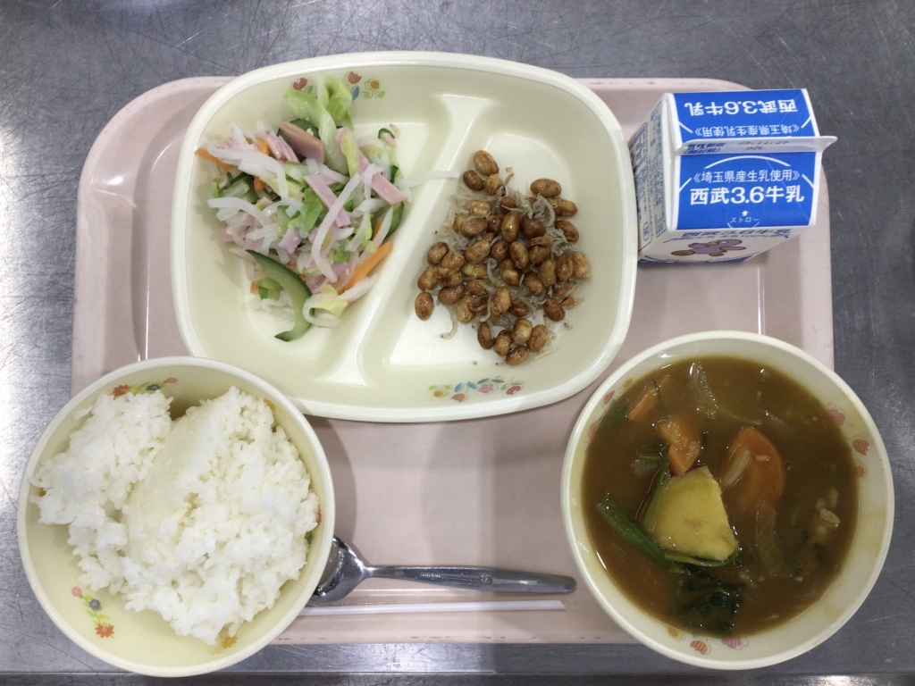 さつまいもが甘くていつもとは一味違うカレーでしたが、どのクラスもたくさん食べていました絵文字:笑顔