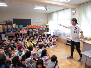 学校探検を行いました。学習したひらがなを学校の中で見つけていろいろな教室を探しました。隠れているひらがなをつなぎ合わせるとある言葉ができます。目をキラキラさせてがんばっていました。