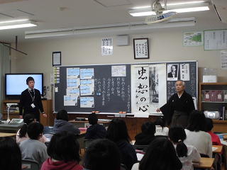 今日の2、3校時に、「ふるさと先生」をゲストティーチャーにお招きして、5年生2クラスで道徳の授業を行いました。