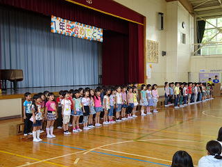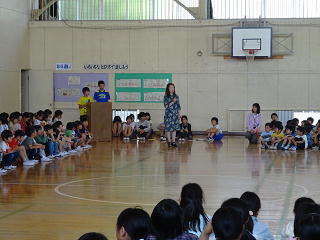 今日、1年生を迎える会をしました。行事やGWの関係で、例年より遅い時期となりましたが、1年生は「よろしくお願いします!」と元気にあいさつをすることができました。児童会から○×クイズがあったあとに、校長先生からも、1年生へ3つの質問がありました。「学校は好きですか?」「給食はおいしいですか?」「勉強は楽しいですか?」どれも、ほとんどの1年生が○と答えてくれたので、うれしくなりました。運動会がすぐにやってきますが、いろいろなことに一生懸命取り組んでほしいと思います。