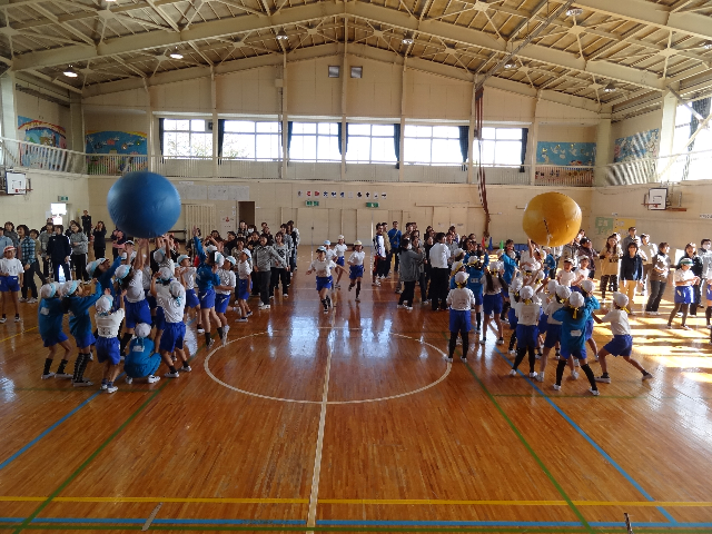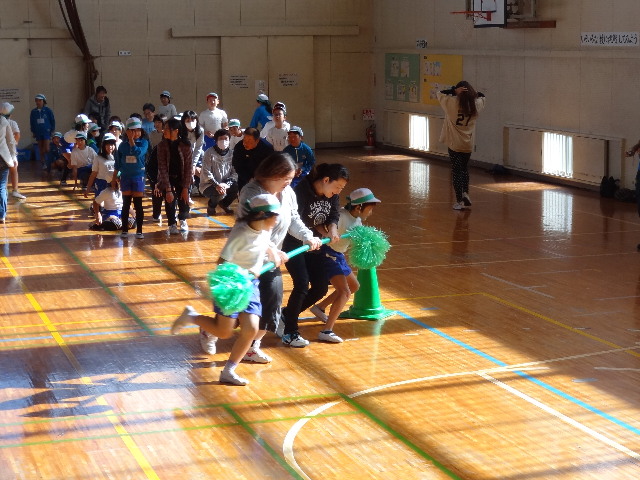 蜜にならない競技を考え実施した大玉運びでは、子どもたちが声を合わせて障害物を越えたり、一生懸命応援する姿が見られました。