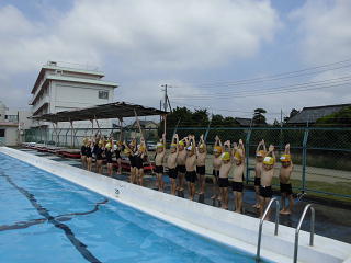 水慣れをして、だるまやくらげのポーズで浮いた後、