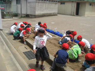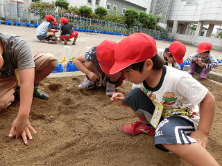 学校探検を行いました。学習したひらがなを学校の中で見つけていろいろな教室を探しました。隠れているひらがなをつなぎ合わせるとある言葉ができます。目をキラキラさせてがんばっていました。