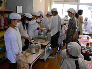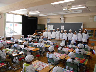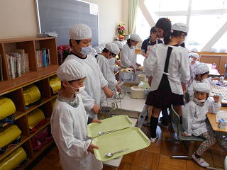 6年生が、配膳のお手伝いをしました。