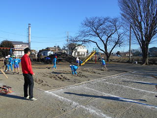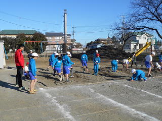 子どもたちは、土の感触を楽しんだり、ちょっぴり怖がったりしながら頑張っていました。