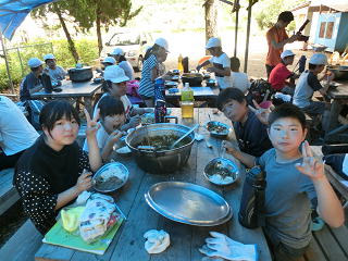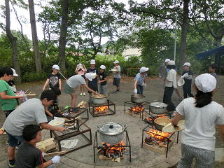 <2日目 ウォークラリー~野外炊事(カレー作り)~学校>