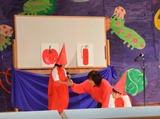 28匹のプログラミンの組み合せと並べ方を考えて、絵を動かしてみよう。(文部科学省)