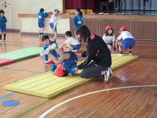 5日(火)~7日(木)までの3日間、深谷アスリートクラブ事業として、大学生が体育授業のアシスタントとしてきてくれました。主にマット運動、跳び箱運動などの器械運動を中心に、なわとびなども見てくれました。また、休み時間には、1年生などと外で一緒に遊んでくれました。ありがとうございました。