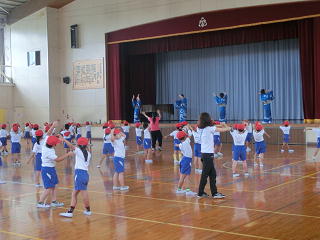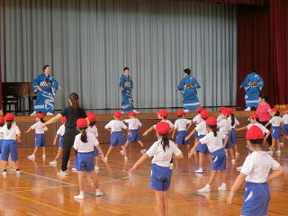 今日は、気持ちのよい風が吹き、過ごしやすい日となりました。3時間目には、「重忠節保存会」の皆様を講師にお招きし、1年生が重忠節の踊り方を教わりました。畠山重忠公の大岩を投げ飛ばす動きを入れたところなど、子ども達は、見よう見まねで一生懸命覚えようとしていました。「重忠節保存会」の皆様には、金曜日に、また全校練習でお世話になります。ありがとうございました。