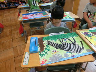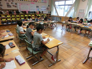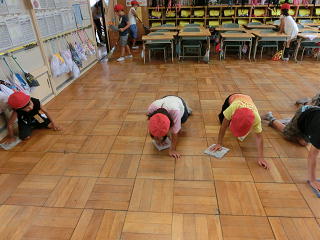 学校探検を行いました。学習したひらがなを学校の中で見つけていろいろな教室を探しました。隠れているひらがなをつなぎ合わせるとある言葉ができます。目をキラキラさせてがんばっていました。
