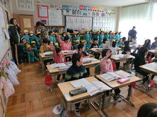 学校探検を行いました。学習したひらがなを学校の中で見つけていろいろな教室を探しました。隠れているひらがなをつなぎ合わせるとある言葉ができます。目をキラキラさせてがんばっていました。