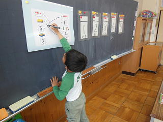学校探検を行いました。学習したひらがなを学校の中で見つけていろいろな教室を探しました。隠れているひらがなをつなぎ合わせるとある言葉ができます。目をキラキラさせてがんばっていました。
