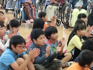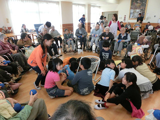 今日は3年3組が、老人ホーム『ひびき』と交流会をしてきま
