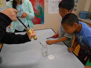 今日は、気体検知管で酸素と二酸化炭素の量を調べました。