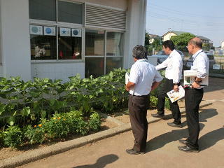 本日、審査員の方々が来校し、本校の各花壇や学校農園などを見ていきました。
