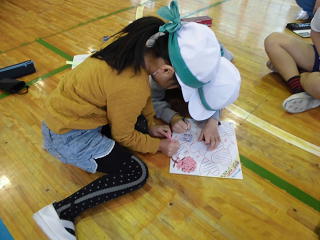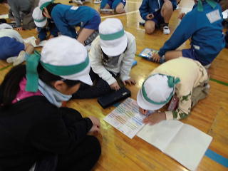 学校探検を行いました。学習したひらがなを学校の中で見つけていろいろな教室を探しました。隠れているひらがなをつなぎ合わせるとある言葉ができます。目をキラキラさせてがんばっていました。