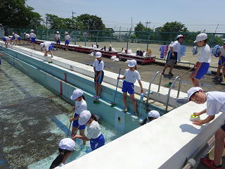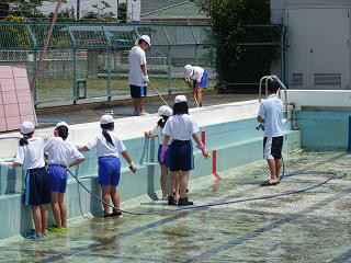 今日は、4・5・6年生がプール清掃でした。大変暑い日となりましたが、子ども達は一生懸命掃除をしてくれ、とてもきれいになりました。ありがとうございました。