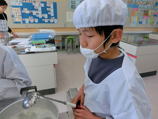 砂糖の量を真剣に計測します。