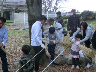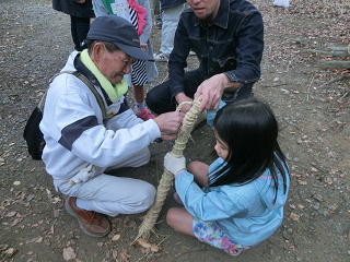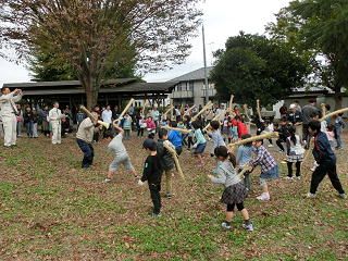 子どもたちは、教わりながら藁でっぽうを一生懸命作り、「十日夜、十日夜~。」と言いながら、地面を力一杯たたいていました。そのあとは、ぼた餅などを作り、みんなでおいしくいただきました。