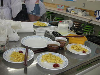 おいしそうなスクランブルエッグやオムレツなどができました。