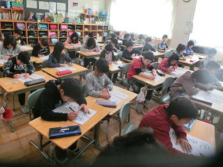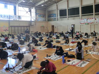 今日は、全学年で書きぞめ制作会を行いました。今までの練習の成果が発揮できるよう、どの子も真剣に取り組んでいました。静かな雰囲気の中で、集中して一つのことに取り組む。こういう時間は大切だなと改めて思いました。