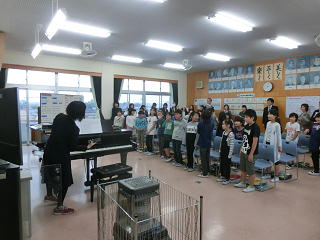 今日の午後、4年2組が音楽の公開授業を行いました。