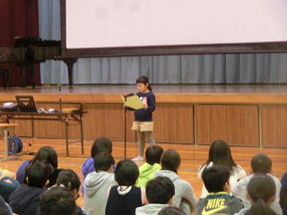 終業式では、1年生の代表児童が2学期に頑張ったことをしっかりと発表してくれました。