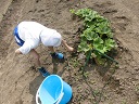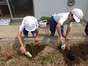 花壇にひまわりの種をまきました。