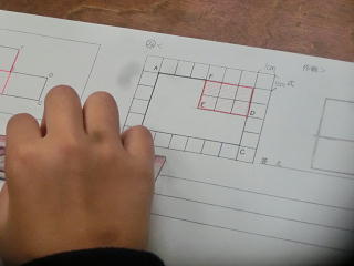 今日、4年1組で校内授業研究会を行いました。算数で単元は「広さを調べよう」。複雑な形をした図形の面積を、計算で求められる図形(長方形)にして解決しようというものでした。