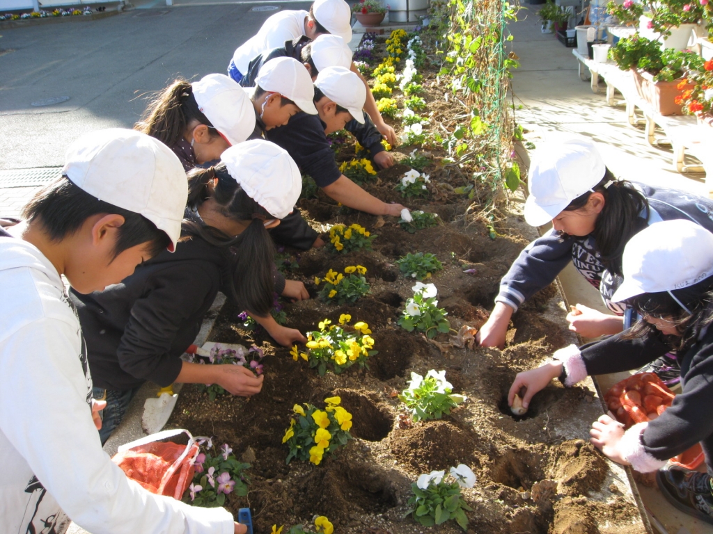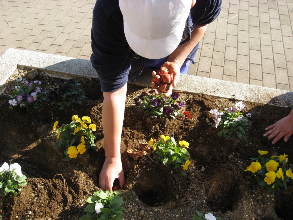 人権擁護委員会から頂いたチューリップの球根を栽培委員会の子どもたちが職員室前の花壇に植えてくれました。色とりどりのチューリップが咲く「 春 」が楽しみですね。