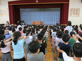 学校探検を行いました。学習したひらがなを学校の中で見つけていろいろな教室を探しました。隠れているひらがなをつなぎ合わせるとある言葉ができます。目をキラキラさせてがんばっていました。