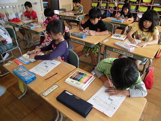 学校探検を行いました。学習したひらがなを学校の中で見つけていろいろな教室を探しました。隠れているひらがなをつなぎ合わせるとある言葉ができます。目をキラキラさせてがんばっていました。