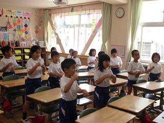 学校探検を行いました。学習したひらがなを学校の中で見つけていろいろな教室を探しました。隠れているひらがなをつなぎ合わせるとある言葉ができます。目をキラキラさせてがんばっていました。