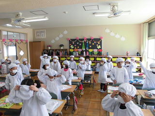 今日は、清掃の仕方、給食の準備の仕方を覚えました。