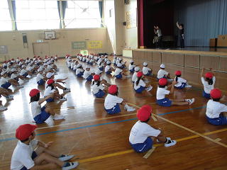学校探検を行いました。学習したひらがなを学校の中で見つけていろいろな教室を探しました。隠れているひらがなをつなぎ合わせるとある言葉ができます。目をキラキラさせてがんばっていました。