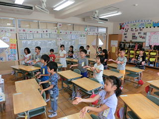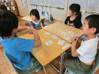 学校探検を行いました。学習したひらがなを学校の中で見つけていろいろな教室を探しました。隠れているひらがなをつなぎ合わせるとある言葉ができます。目をキラキラさせてがんばっていました。