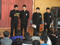 本中学校の4人の生徒会役員さんが、川本北小学校を訪問し、中学校への進学を前に不安をかかえる6年生に中学校生活を説明したり、質問に答えたりしてくれました。