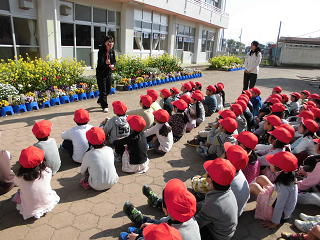学校探検を行いました。学習したひらがなを学校の中で見つけていろいろな教室を探しました。隠れているひらがなをつなぎ合わせるとある言葉ができます。目をキラキラさせてがんばっていました。