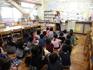 図書の先生から、本の借り方や図書室での過ごし方の話を聞き、