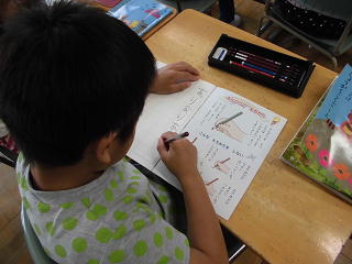 学校探検を行いました。学習したひらがなを学校の中で見つけていろいろな教室を探しました。隠れているひらがなをつなぎ合わせるとある言葉ができます。目をキラキラさせてがんばっていました。