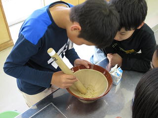 子どもたちは、土の感触を楽しんだり、ちょっぴり怖がったりしながら頑張っていました。