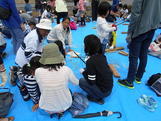 子どもたちは、土の感触を楽しんだり、ちょっぴり怖がったりしながら頑張っていました。