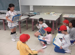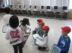 学校探検を行いました。学習したひらがなを学校の中で見つけていろいろな教室を探しました。隠れているひらがなをつなぎ合わせるとある言葉ができます。目をキラキラさせてがんばっていました。