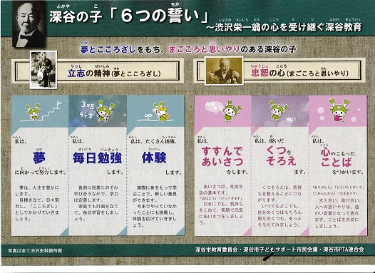 深谷市では、郷土の偉人である渋沢栄一翁の心を受け継ぐ教育を推進しています。